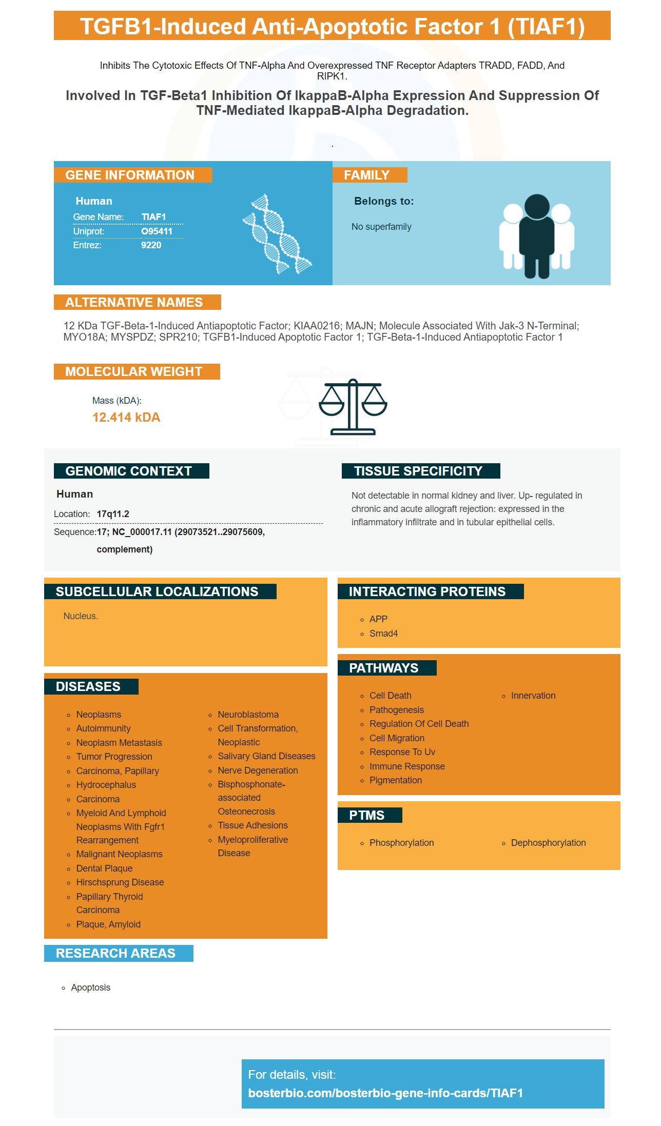 PMID: 9918798 by Chang N.-S., et al. Cloning and characterization of a novel transforming growth factor- beta1-induced TIAF1 protein that inhibits tumor necrosis factor cytotoxicity.