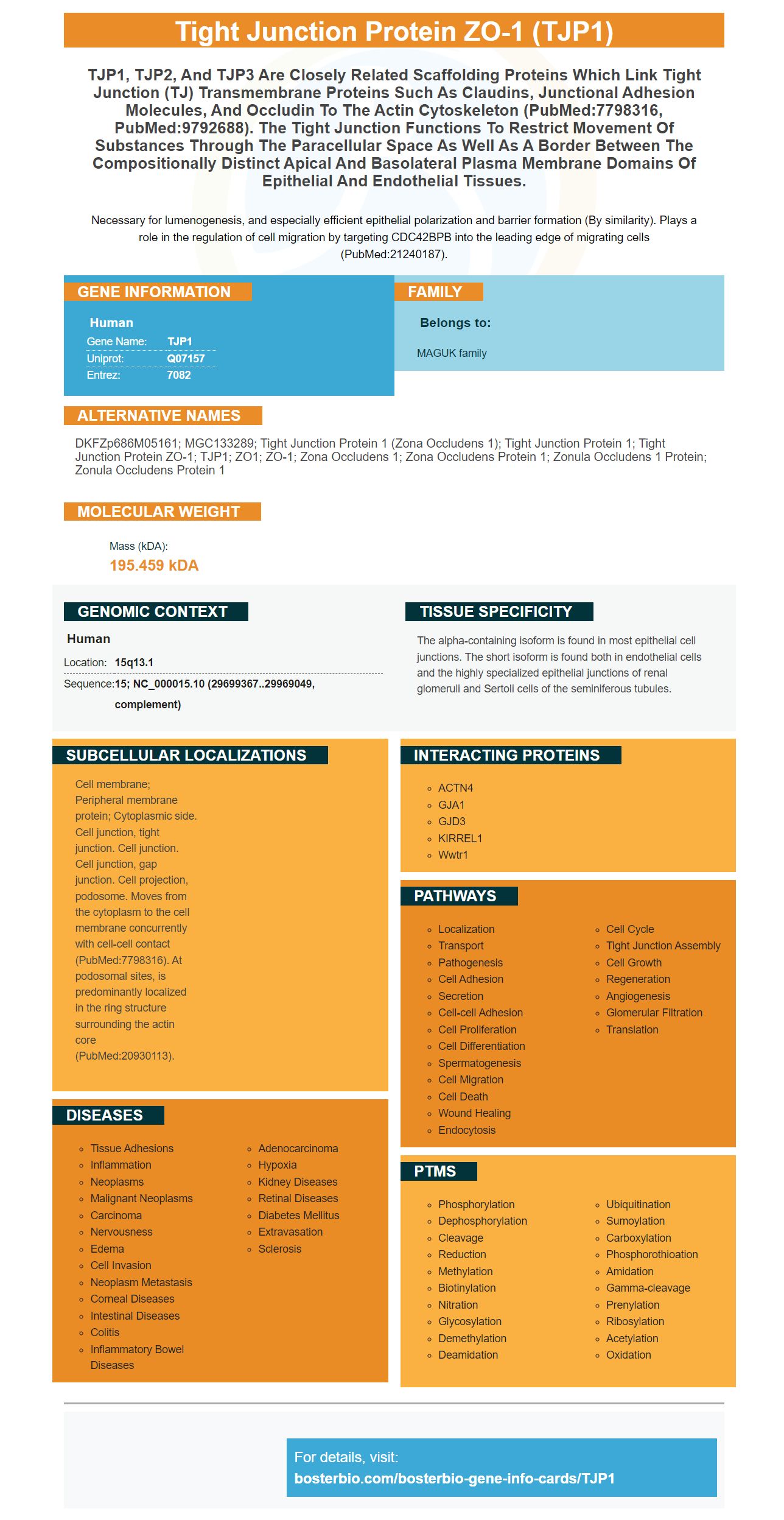 DKFZp686M05161; MGC133289; tight junction protein 1 (zona occludens 1); Tight junction protein 1; tight junction protein ZO-1; TJP1; ZO1; ZO-1; zona occludens 1; Zona occludens protein 1; zonula occludens 1 protein; Zonula occludens protein 1