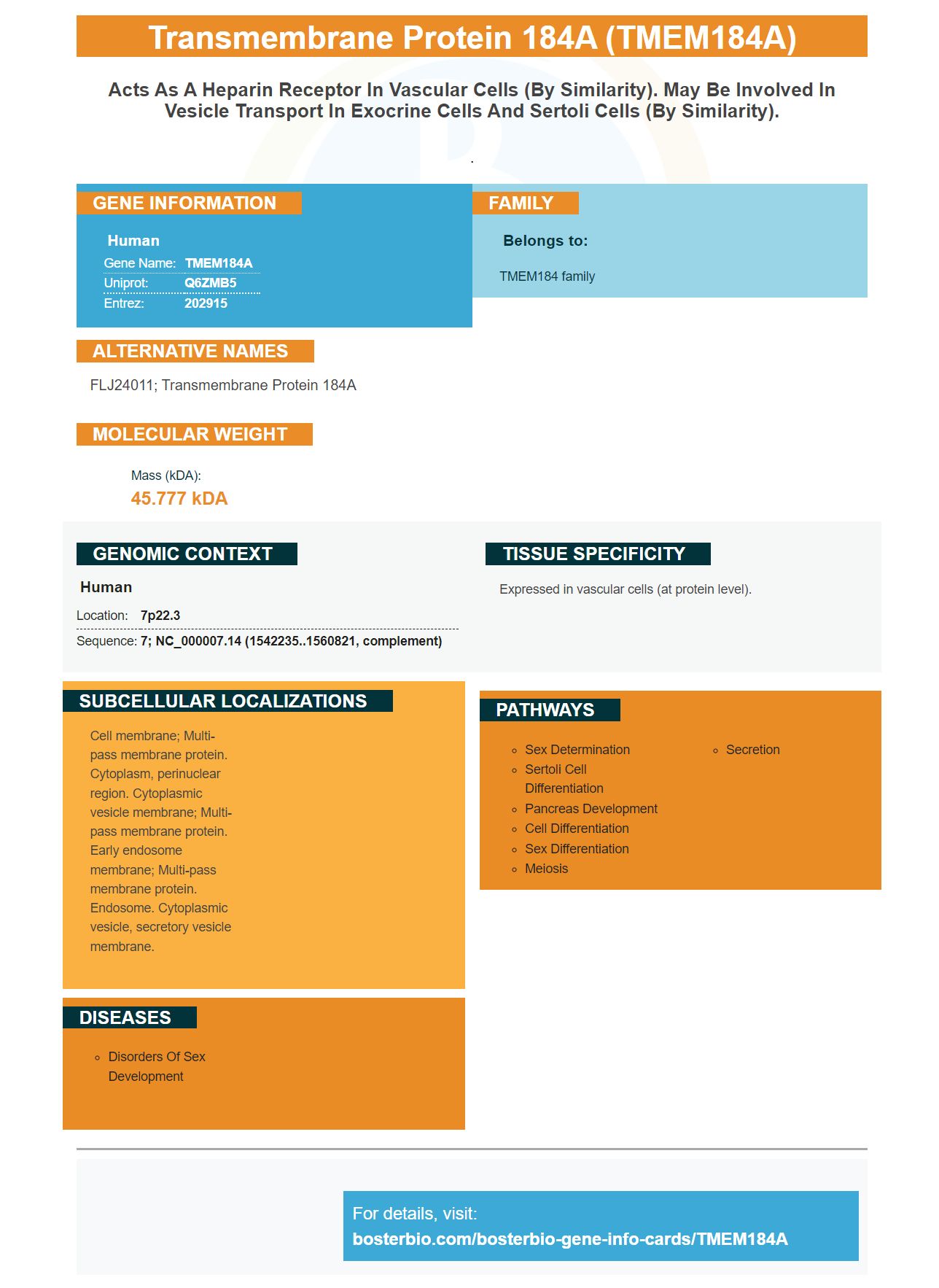 PMID: 26769966 by Pugh R.J., et al. Transmembrane protein 184A is a receptor required for vascular smooth muscle cell responses to heparin.
