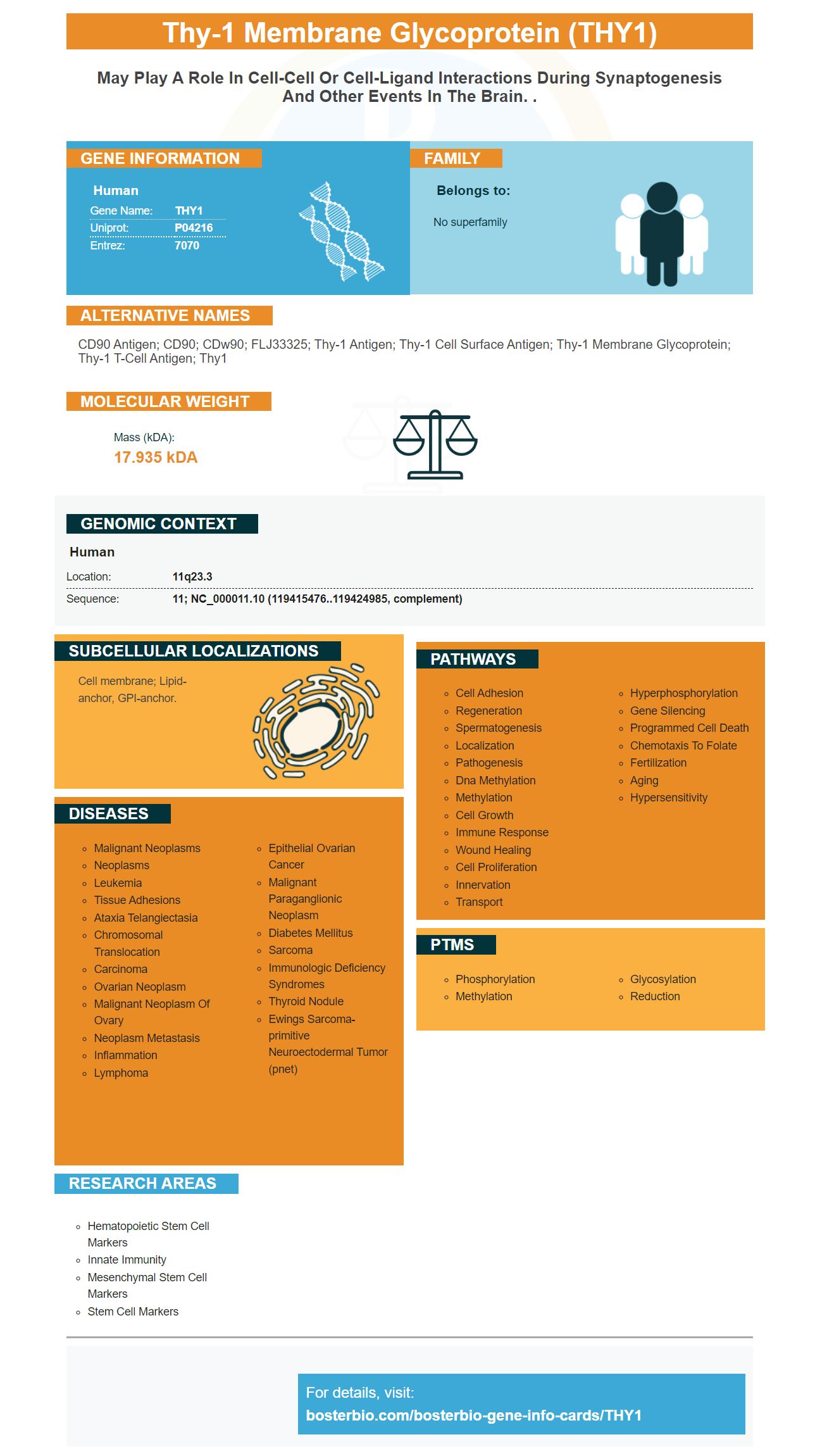 CD90 antigen; CD90; CDw90; FLJ33325; Thy-1 antigen; Thy-1 cell surface antigen; thy-1 membrane glycoprotein; Thy-1 T-cell antigen; Thy1