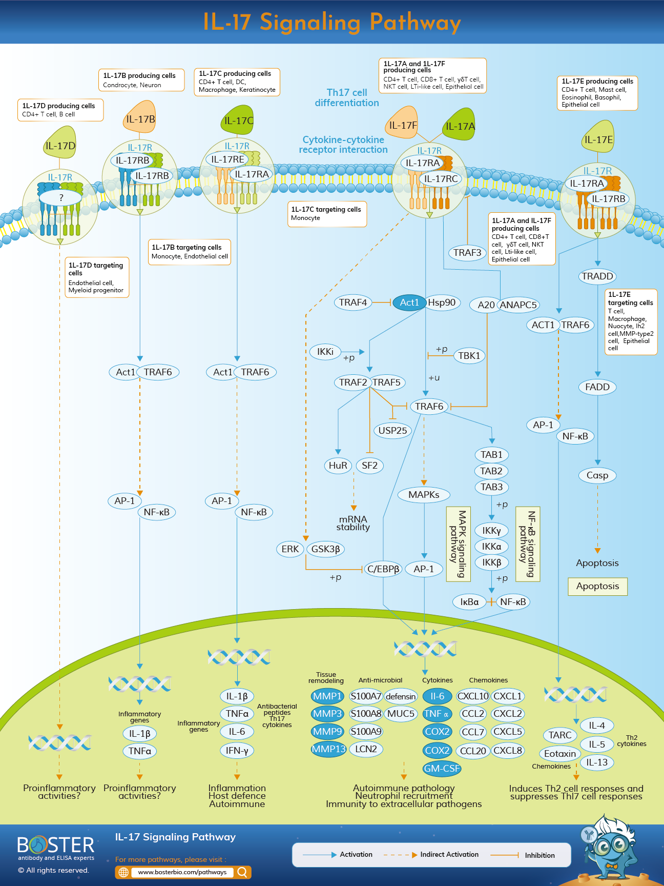 The IL-17 signaling pathway plays a role in the host's defense against extracellular bacterial and fungal infections, as well as the onset of several autoimmune diseases.