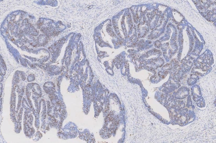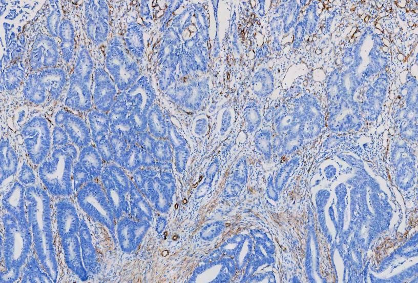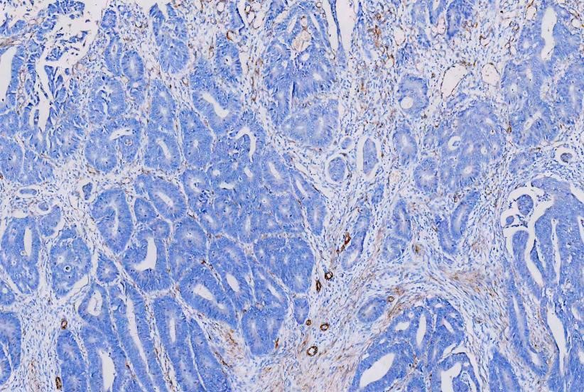 of human rectal cancer tissues. The tissue section was blocked with 5% BSA. The
