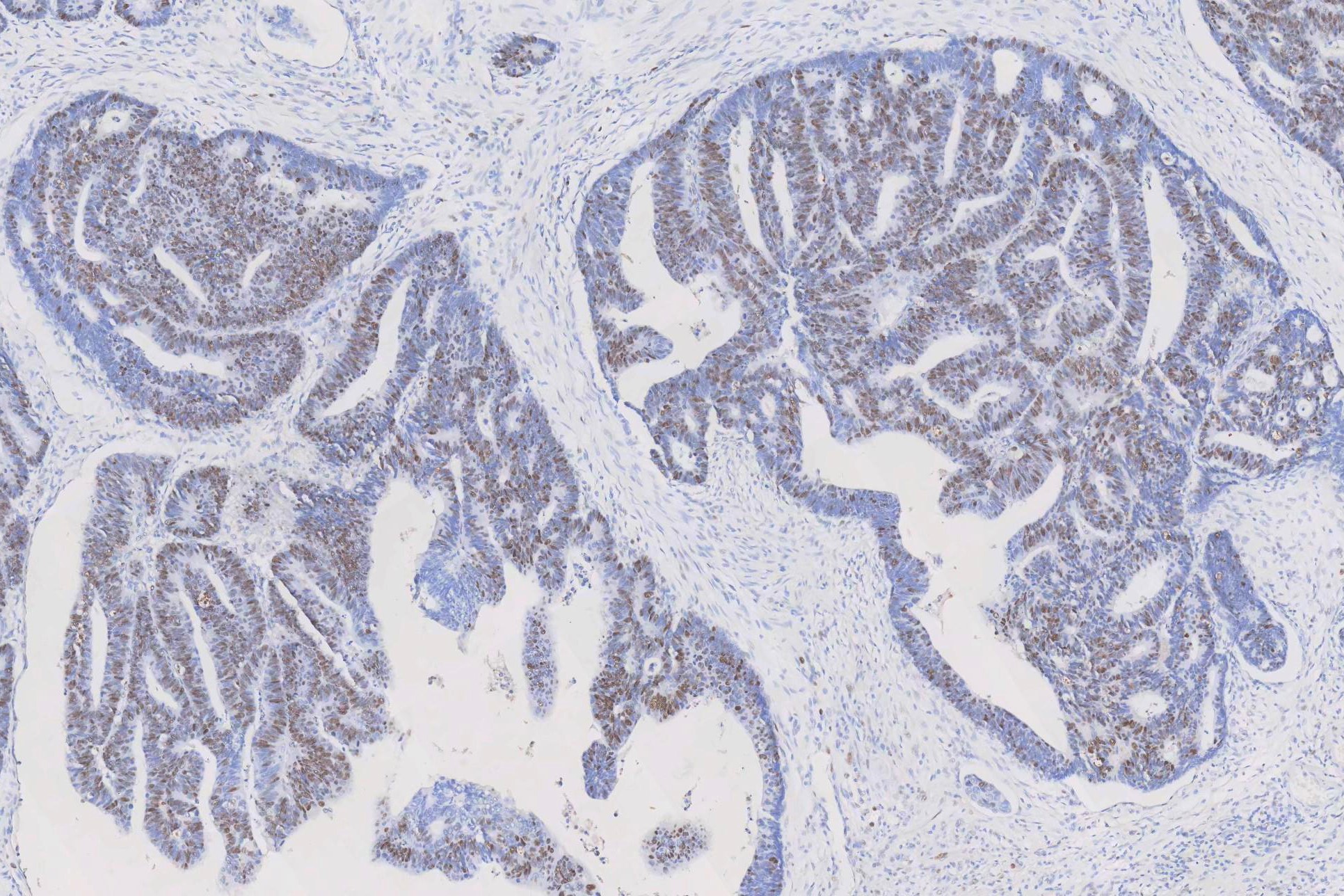 IHC analysis of PCNA using anti-PCNA antibody (MA1083). PCNA was detected in a paraffin-embedded section of human rectal cancer tissue. The tissue section was blocked with 5% BSA. The tissue section was then incubated with 1μg/ml mouse anti-PCNA Antibody (MA1083) overnight at 4°C. Peroxidase Conjugated Goat Anti-Mouse IgG was used as a secondary antibody and incubated for 30 minutes at 37°C. The tissue section was developed using the HRP Conjugated Mouse IgG Super Vision Assay Kit (Catalog # SV0001) with DAB as the chromogen.